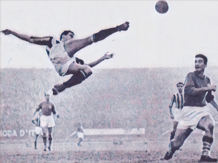 Parte un lancio di Magli verso Pandolfini. L’attaccante viola scatta, tra lui e il portiere c’è solo Carlo Parola, difensore juventino detto “Nuccio Gauloises” per la sua inseparabile passione per il fumo, che con uno stacco imperioso respinge la palla. Non è la rovesciata di un attaccante a caccia di gloria ma una spazzata difensiva per allontanare il pericolo dalla propria area: un gesto istintivo ma di una coordinazione perfetta.
