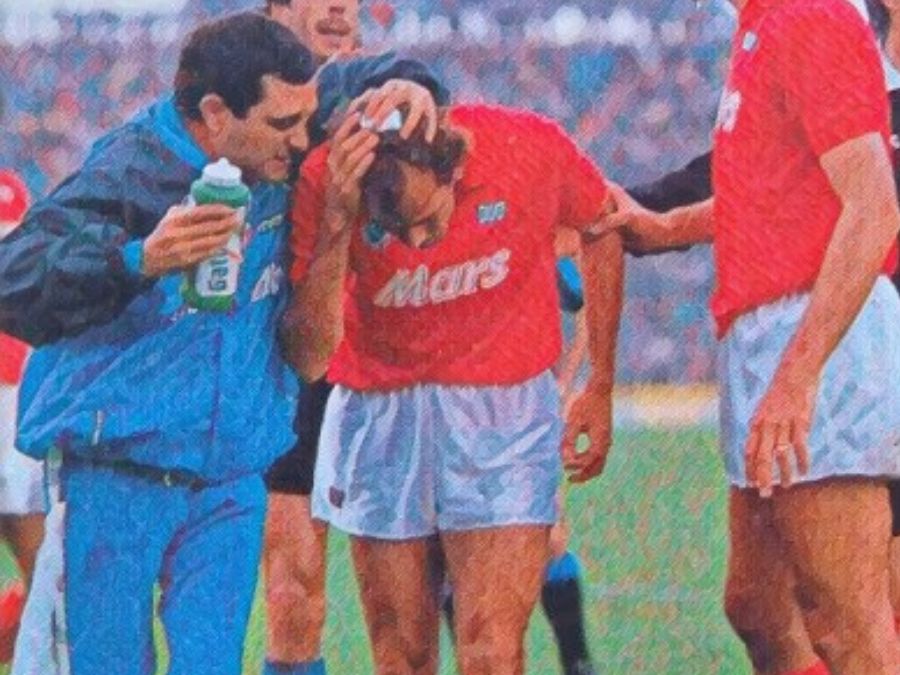 A poco più di 10 minuti dal 90’, sul risultato di 0-0, una monetina lanciata dai tifosi dell’Atalanta, colpisce in pieno la testa di Alemao. Il calciatore brasiliano viene portato a bordo campo e curato dal massaggiatore dei partenopei, Carmando. L’impressione è che possa rientrare. Ma proprio Carmando lo invita a rimanere a terra e lascia il terreno di gioco sostituito da Zola.